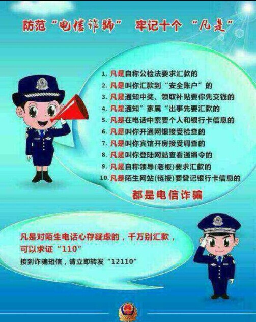 防范“电信诈骗”牢记十个“凡是”